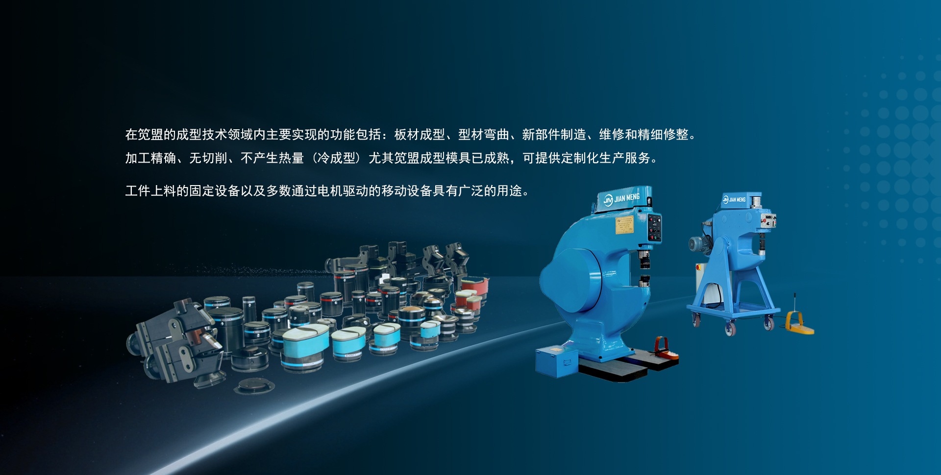 公司主要生產(chǎn)制造:PF350異形曲面快速成形機(jī),PF665雅高成型機(jī),收邊機(jī),放邊機(jī),校形機(jī),鈑金整形機(jī),球面成形機(jī),高速成型機(jī),金屬整平機(jī)等設(shè)備行業(yè)應(yīng)用